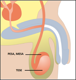 PESA AND MESA involve extraction of sperms from Epididymis (a tubular extension of testis). This is done when the Vas Deferens (duct that carries sperms away from testis for being ejaculated) is impaired. In the event of the PESA method the sperms are aspirated together with the fluid from epididymal ducts with a fine needle directly through the skin of scrotum. In MESA method a small microsurgical skin incision is performed, a puncture needle is inserted via this incision and the fluid is aspirated. The fluid is immediately analyzed in an embryology laboratory.